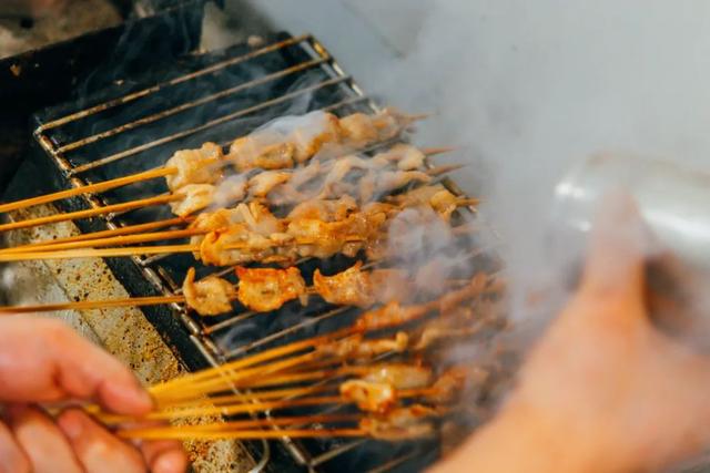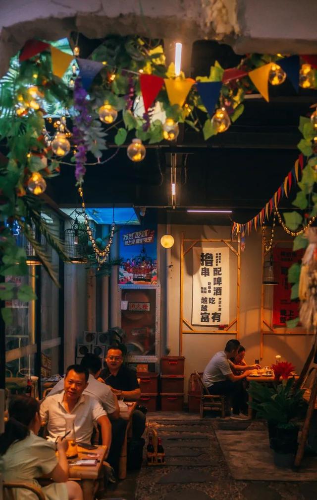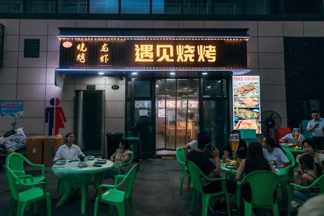 或许是在室内禁锢了太久,遇见烧烤店的客人选完烤串后,大多喜欢坐在室外,吹着巷子里的凉风,跟好友聊聊近况,夜晚在此刻变得悠长起来。