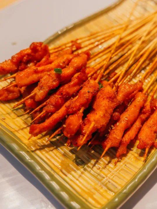 不同于其它店铺,“撸不二”近九成的串都是当天现切现穿,为的就是保证食材的原汁原味。
