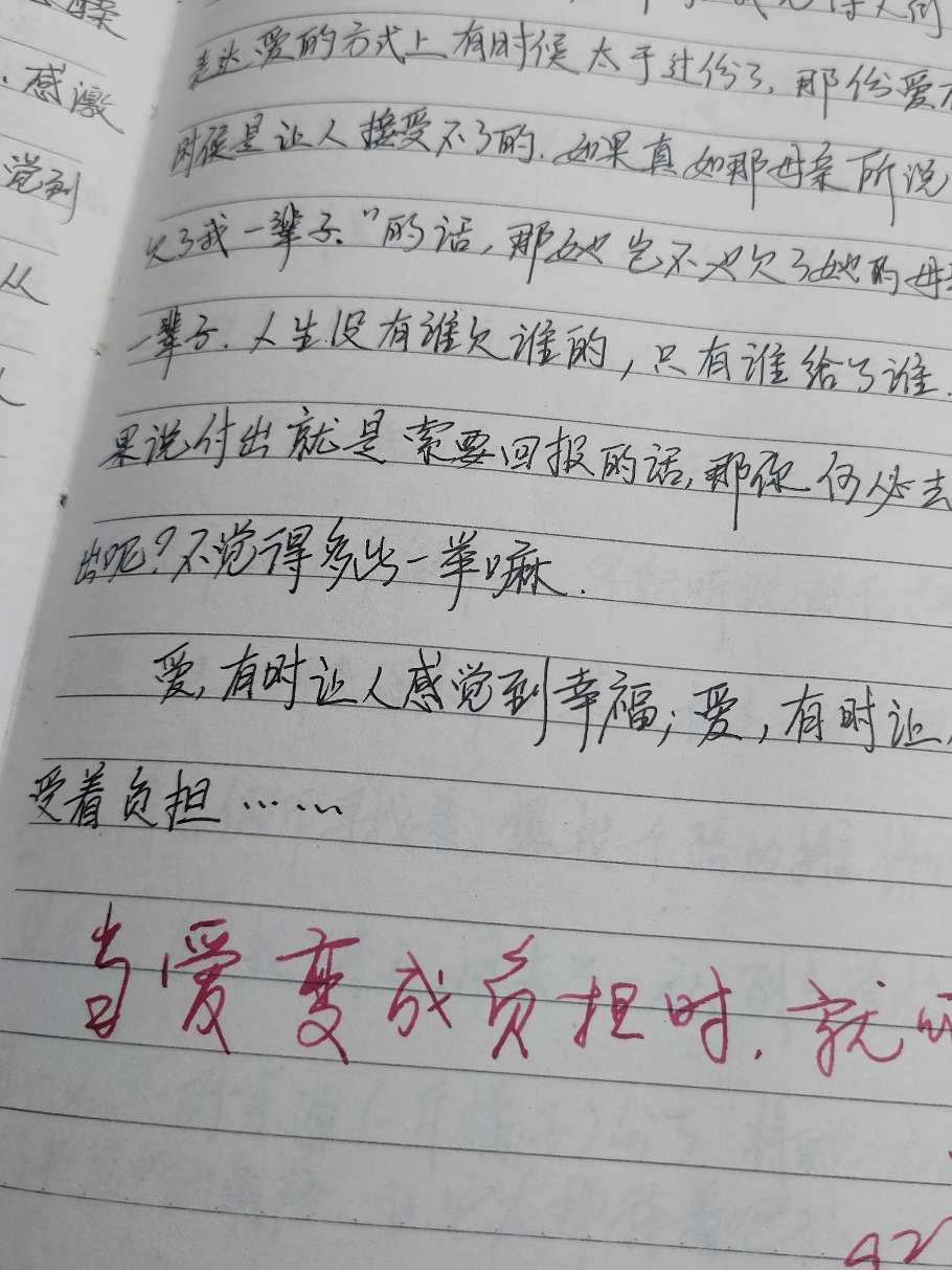 在爱情世界里,喜欢一个人别太用力,你越是在乎,害怕失去,抓的越牢,失去的就越快越彻底……当你在乎对方的一言一行,在乎对方对你的看法的时候,就是你失去自我的那一刻。会消耗自身的精力,会疲惫。会失去自我,也给对方带来精神压力,逃避并远离你。爱最明显的表现就是付出,付出也要适度,不能给人带来压力,双方都愉悦,感受到平衡,才是最好的状态。其实不光爱情,亲情和友情也类似。父母对孩子的爱也是如此,有的父母对孩子有控制欲,孩子小的时候还不懂什么,长大了有自我意识了,就会开始反kang。精神上反kang,身体上反kang。父母能意识到,并且尊重孩子的,双方经过沟通交流后,彼此改变自己,相互融合,最后达成一种舒服的相处模式,共同成长进步。父母一味地秉着“我都是为你好”的态度的,很多孩子,长大后,会选择远离父母。即便身体距离无奈的和父母依旧生活在一起,精神世界上也会选择保持距离,不跟父母有太多的交流。父母会觉得孩子长大了不跟我说话,会觉得这孩子跟我不亲,觉得老年孤独……