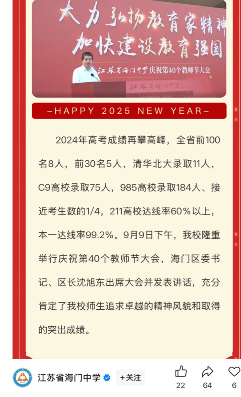我特意看了下表单中第八名的如东中学,南大34人,这个数字是非常大的,但考虑到如东中学的实力,也确实在南通所有县中里面偏后的位置,所以,进一步探究。好像博主对于如东中学,以及沭阳如东中学,这两所高中混淆了。
