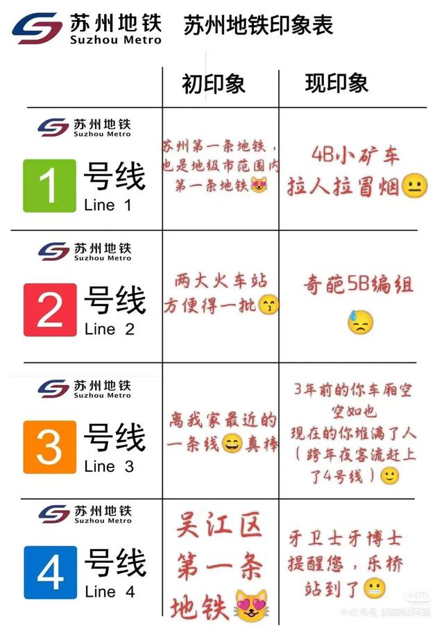 火了!网友热议苏州地铁“印象表”,你最常坐哪条线?