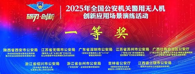 近日,2025年全国公安机关警用无人机创新应用场景演练活动圆满落幕。昆山市公安局民警王坚、夏炜、孔祥瑞、翁琪轩代表苏州市公安局参赛,其自主研发的“‘苍穹之柱’多功能模块化低空警务飞行综合保障基站”凭借卓越的创新性和实战价值,在A类装备技术创新项目中勇夺第1名,荣获演练活动一等奖。