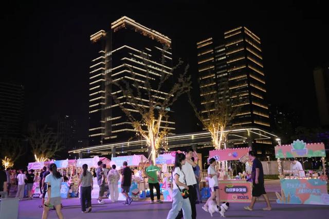 正如该市民所言,当晚的市集可谓包罗万象。在“两岸好物馆”的摊位上,特色手工艺品吸引了不少市民驻足挑选;“森海映画”的饰品区,摊主正为感兴趣的市民试戴发簪;而“捷安特”的骑行装备和“贝碧欧”的绘画颜料,则满足了运动爱好者和文艺青年的不同需求。此外,日世冰激淋、统一茶饮、马培德文具、顺峰家纺等摊位前不时会有市民围上来,兴致勃勃地品味美食、“淘宝”好物。