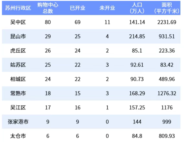 目前已开业购物中心25个,存量商业数量在苏州市仅次于吴中区。