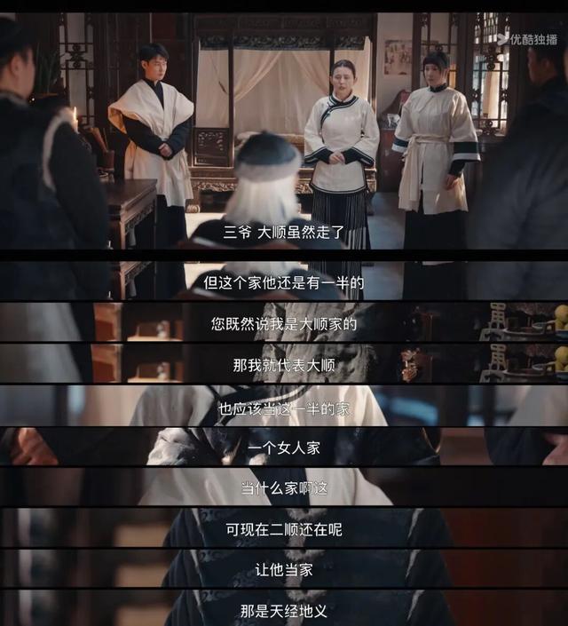 陈家大哥陈大顺去世后,其妻褚韶华与二哥陈二顺之间因家庭共有财产的分割问题产生激烈矛盾。族长表示,家产应交由陈二顺管理。褚韶华不同意,表示父亲当时答应了分店给他们一半的股权。族长则称就算有,也是陈大顺还在的时候,现在陈二顺还在,不可能让女人当家。