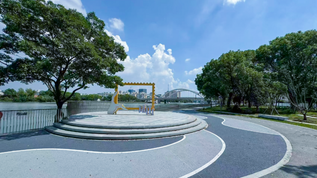 在原有线型基础上更新水岸步道,将现状低效的弧形硬质空间打造成可休憩、可打卡的“社交泡泡”。