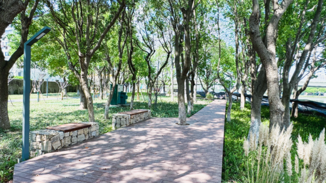 林下步道静谧安逸,水边空间明亮无遮挡,水岸节点空间作为观看桥梁的最佳点位。