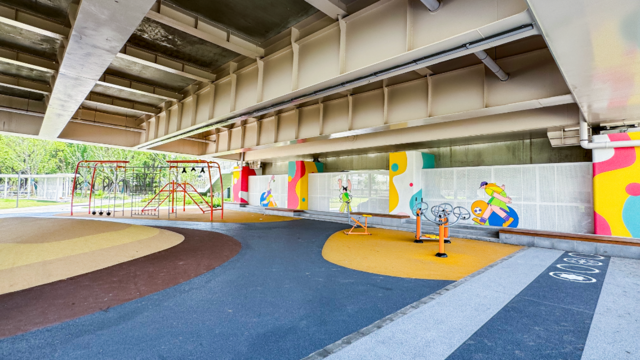 在桥位处打造成全龄运动场,满足暑天、雨天的户外活动需求。