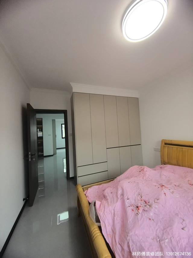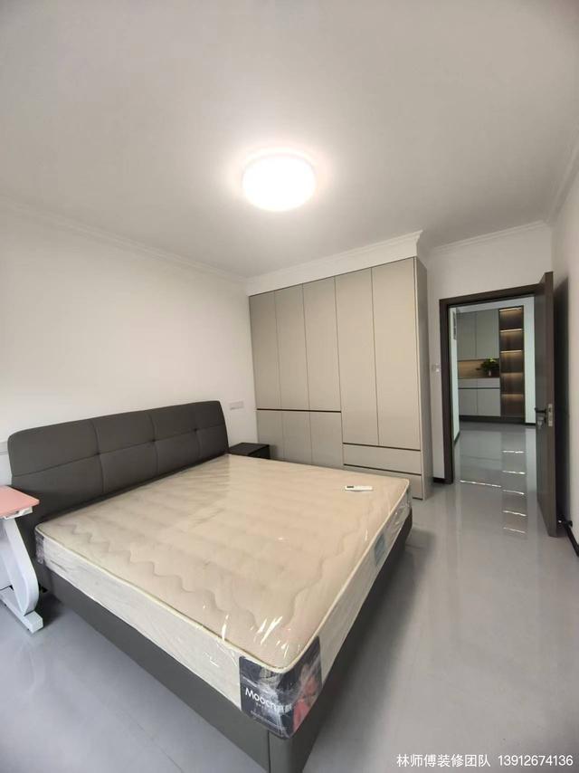 两个卧室延续简约基调,均以 “实用收纳 + 舒适睡眠” 为核心。墙面浅色乳胶漆营造温馨氛围,顶面石膏线与客厅形成风格统一,避免空间割裂。最亮眼的设计是到顶通顶衣柜,采用免拉手反弹器设计,视觉上更显整体,内部划分挂衣区、叠放区与被褥区,轻松容纳四季衣物,彻底解决收纳难题。