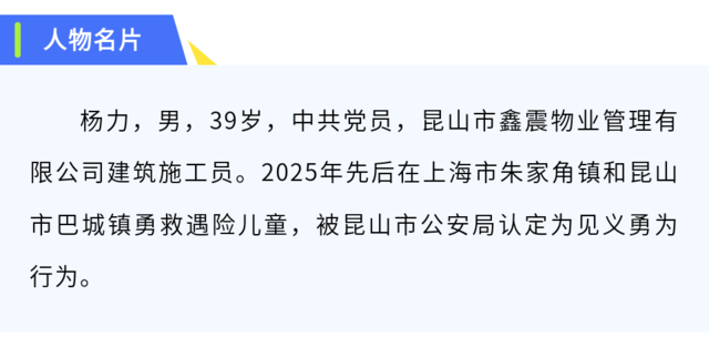 这已不是他第一次果断施救。2025年初寒冬,上海朱家角古镇同样上演惊险一幕。正在河边休息的杨力听到急促的“救命”声后迅速奔向河岸,只见一名儿童在水中挣扎,其父虽已跳河营救,却因河水冰冷、棉衣厚重,行动吃力反而将孩子按入水中。
