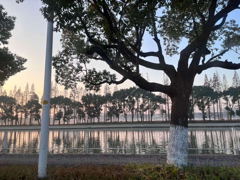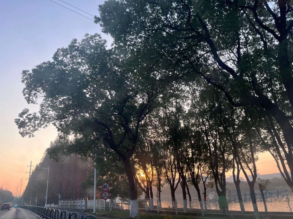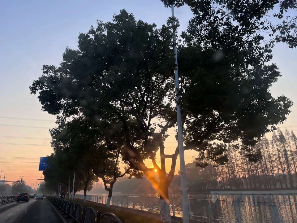 今天起的很早,送完媳妇上班还要陪女儿去中医院,初冬清晨七点,昆山已褪去静谧,震川西路上车流渐密,喧嚣里藏着城市苏醒的鲜活。车行途中,娄江岸边的水杉格外惹眼,笔直挺立的枝干整齐列队,绵延向远方,墨绿针叶沾着晨露,添了几分清冽雅致。 云层轻散,朝阳穿透缝隙洒向江面,粼粼波光随水波流转,细碎如碎金跳跃。清风拂过,水杉轻晃,光影在路面斑驳移动,暖意悄然漫上心头。忽忆儿时课文《杨家岭的早晨》,那暖金色的窗棂、碾谷的轻响犹在耳畔,此刻娄江晨景虽异,却同有晨曦里的温润与生机,寻常晨间竟藏着最动人的惬意。