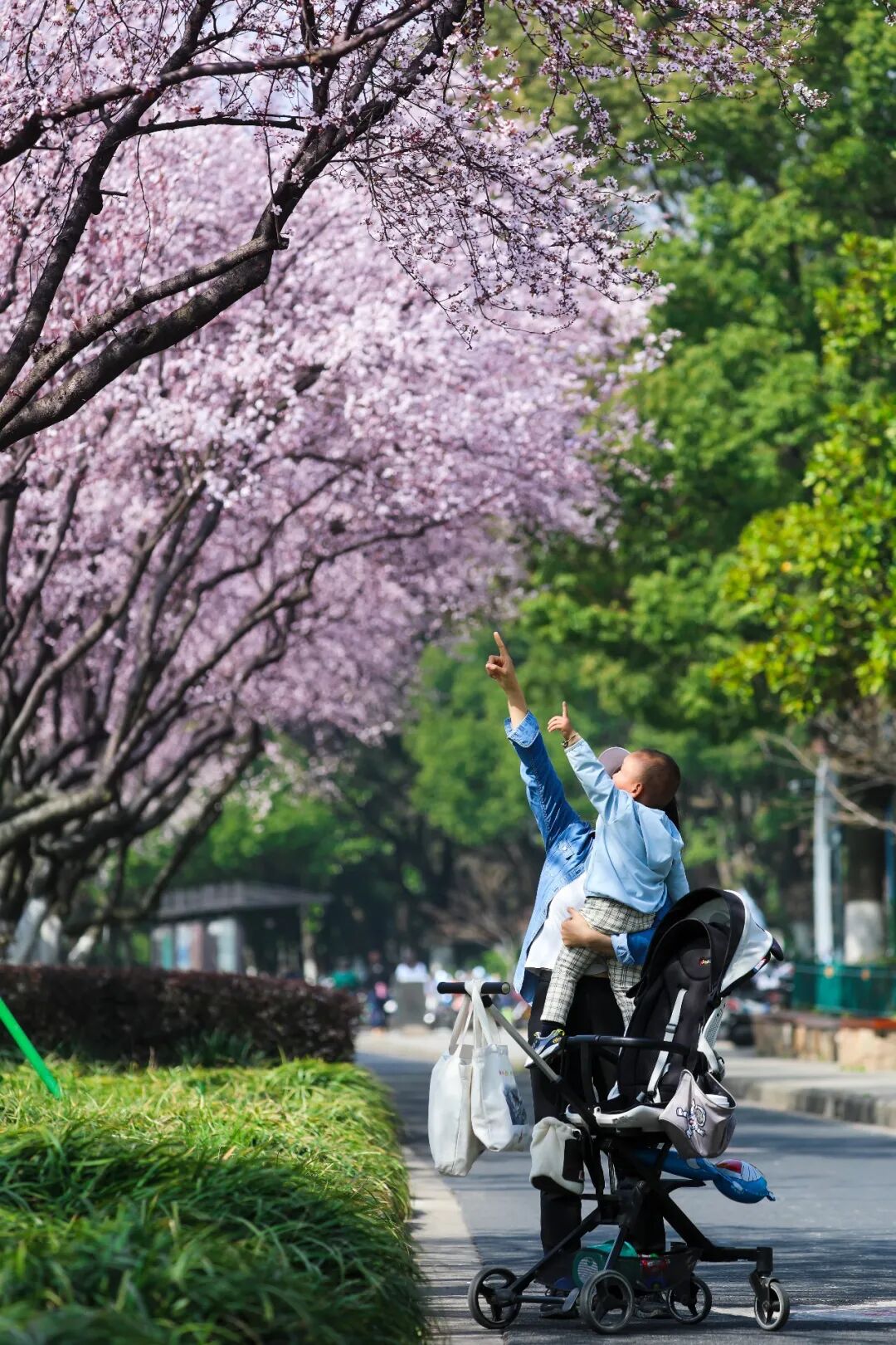 将整条道路晕染成一条通往春天的长廊