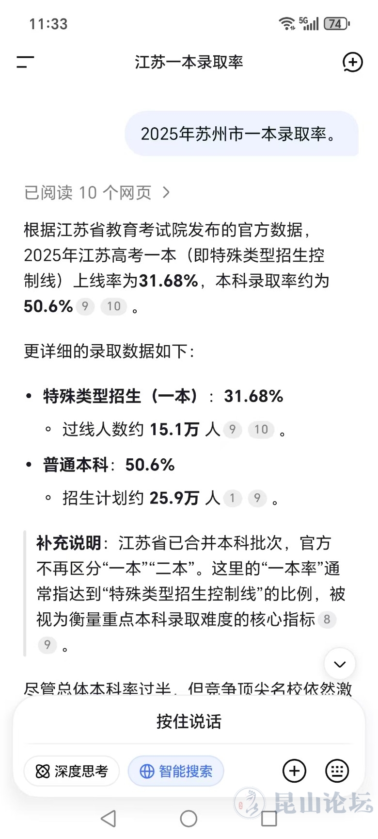 郁闷的色:这就是你了解不多了,昆山的教育是非常非常非常好的,放全国的县里面也是名列前茅。给你个数据,锦溪高中,目前全昆山垫底的高中,高考本一和本科录取率都高于河南全省录取率,河南能上本一的娃不足全部高中生的15%。 (2026-04-08 08:41)