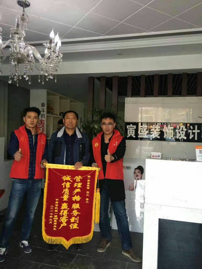 “手艺精堪 尽心尽责 精心设计 温馨装潢 ”评价很高我们会更加努力的!用好的姿态迎接每一位支持我们的业主!寅盛小伙伴们继续加油哦!
