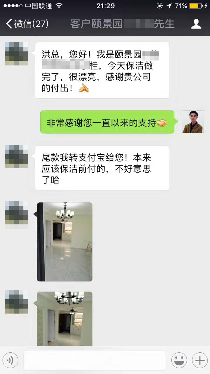 感谢颐景园桂先生前期对我们的信任,在装修期间对我们的理解以及给予我们工作的配合,因为有了您的相信、配合、理解、支持,我们的合作也更加的顺利愉快!您的满意是我们辛苦的最好回报!