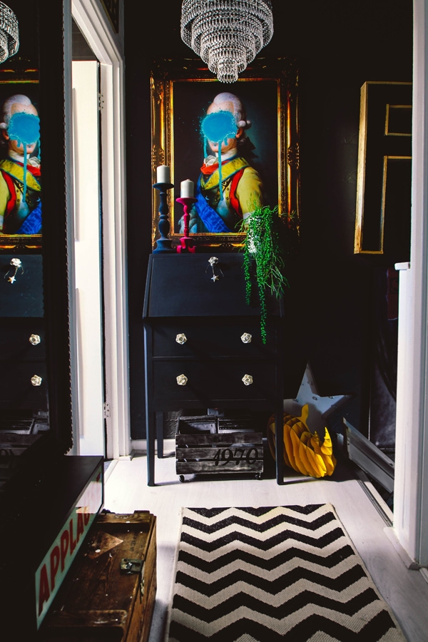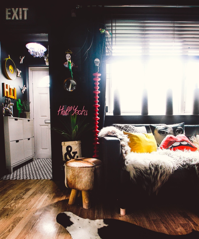 这是被分享在 Instagram 上的一座公寓,屋主 Pati Robins 与他的丈夫以及女儿共同居住在此,从波兰搬进英国这座租住的78平米公寓已经有十年的时间了,在这十年间 Pati Robins 不断地将公寓进行翻新与填补,完全改变了初来时房屋老旧破败的痕迹,酷炫的黑色调与丰富的点缀品,让这里营造出戏剧般的视觉张力。