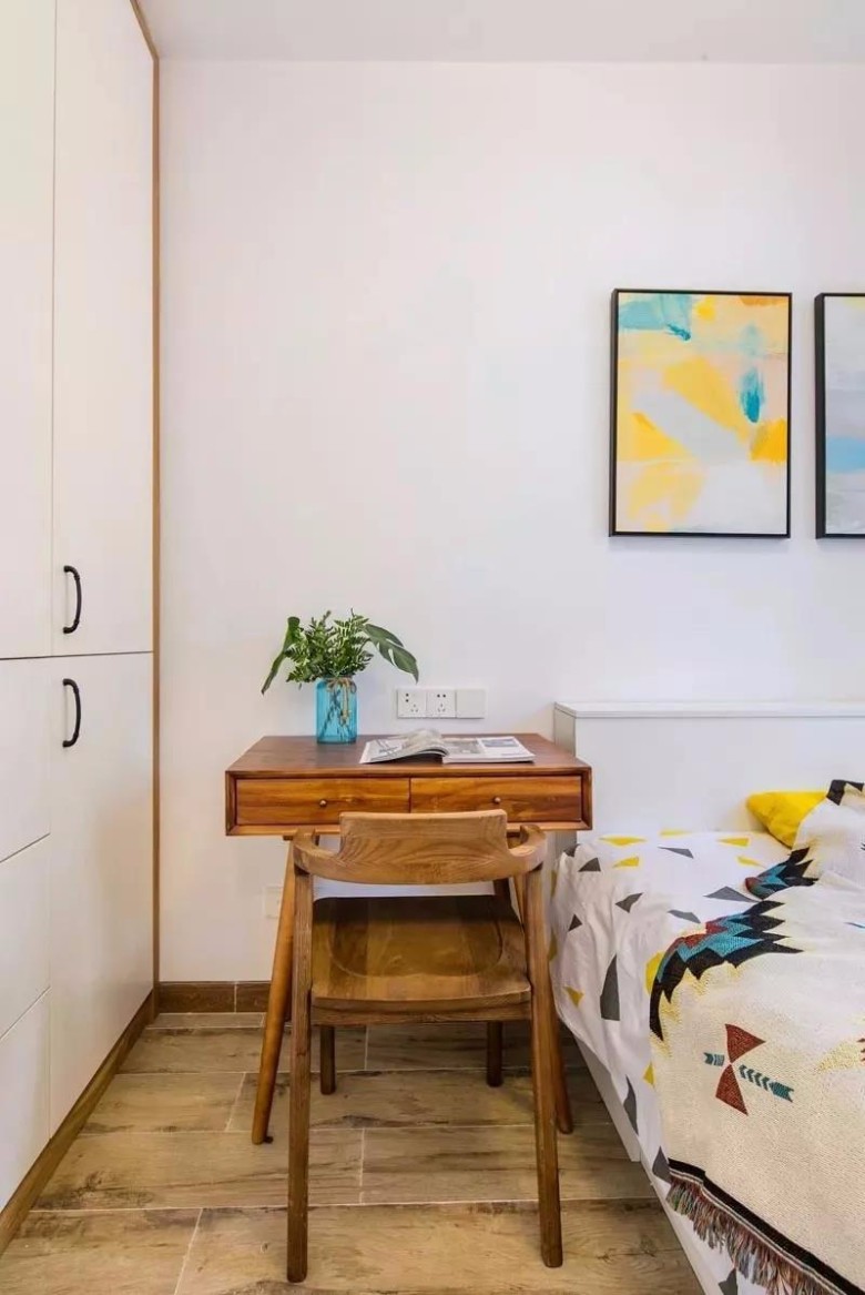 长辈房打破一惯素雅的软装搭配做法,采用比较鲜艳的色彩,但也不乏稳重的气息,干净、利落。