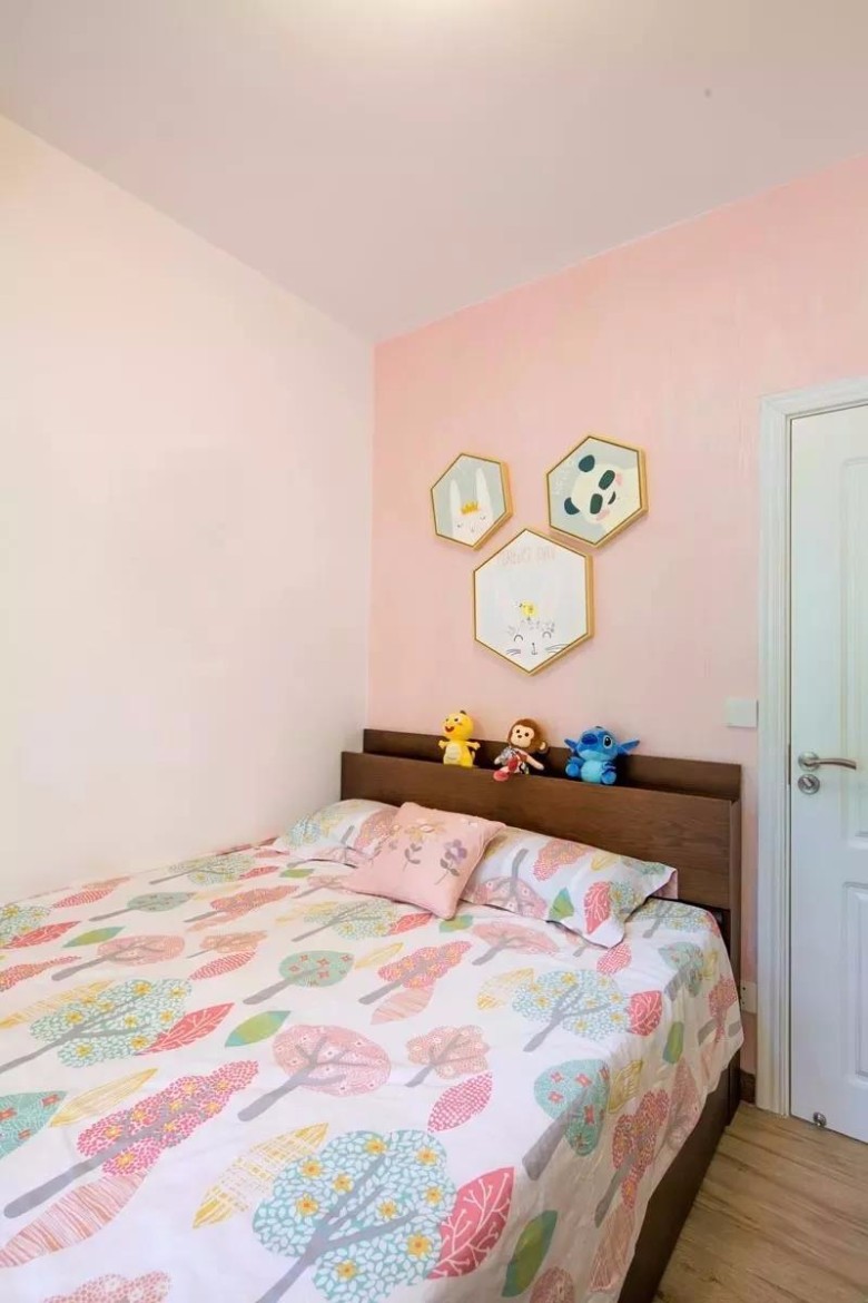 女孩房以少女粉色调与白色墙面进行搭配,营造出柔和温润的生活气息。