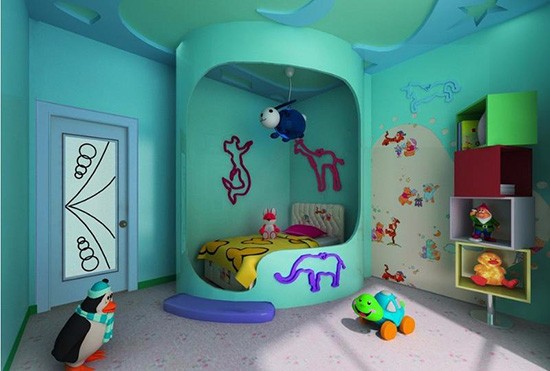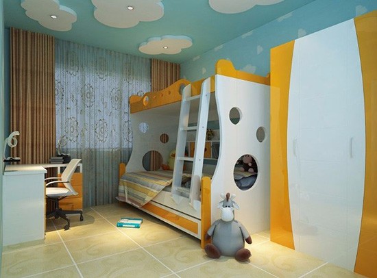 童年是每个人的必经的一段生命旅程,每一个孩子都是父母的天使。作为父母,应该怎样给这些小精灵、小天使们营造好他们的栖息地——儿童房,伴随他们度过一个美妙梦幻的童年呢? 多姿多彩的儿童房可以使孩子健康成长并形成良好的性格;充满童趣的儿童房可以让孩子感受爱、感受温暖;梦幻绮丽的儿童房可以让孩子插上想象的翅膀。良好的儿童房设计能帮助父母们为孩子们编织孩子一个难忘的童年,打造一个幸福的童年空间。 美式风格的儿童房设计充满了现代感。宽敞明亮的落地窗保证了房间充足的彩光,复古的吊灯凸显了屋子的华美,淡雅的壁纸让房间复古却不乏温馨,墙上的挂画和滑板等软装饰突出了房间小主人的兴趣爱好,而且使以冷色调为主的房间显得灵动,并洋溢着少年的活力。床头的柜子、床尾的案几以及角落的沙发都彰显着父母为孩子挑选家具的考究与独具匠心。 房间的独特之处是屋顶的吊灯设计大胆的选取了云朵的造型,壁纸也是蓝天白云的设计,仿佛让孩子整个身心都处在大自然中,抬头便可仰望天空,看白云朵朵,像羊群、像棉花糖,让小朋友们无限遐想。这样的设计使得天花造型融功能性和美感于一体。既保证光线又不能太刺眼,又通过独特的天花造型做出柔和光线能够给小朋友一种安全、温馨的感觉。 充满森林色彩的房间应该是每个女孩子的梦想,草地、鲜花、蝴蝶、小鸟。置身其间仿佛走进童话故事中,可以和小鸟对话,和蘑菇做朋友,和蝴蝶共同玩耍、嬉戏。色彩鲜亮的森林主题让孩子从小接受色彩的刺激,学会欣赏色彩、欣赏美并培养美的情操。卡通造型的柜子,地台的镂空造型,都是童话色彩更加浓郁,身处其间的小宝贝们一定会非常开心的度过每一天。 卧室里给孩子的睡眠区域单独做了造型别致的隔断,将整件屋子的睡眠区和活动区做了很好的划分。孩子玩累了就回到隔断中的睡眠区休息,仿佛潜移默化的告诉孩子家永远都是敞开的,累了就回家吧。 简单的儿童房也不失温馨与爱意,一件小饰品,一个毛绒玩具都能让小小的儿童房充满童趣。 色彩艳丽且夸张的床头壁纸,让整间房子彰显着独特的个性与品位。床头两侧的球蓝,让孩子身处居室也能随时运动。 一款靓丽的地毯也会让整间儿童房变现出另一番情趣,冷暖交替的儿童房最让人动心。 营造一个充满童趣的儿童房莫过于选好一款壁纸,卡通主题的壁纸是大多数孩子的最爱。