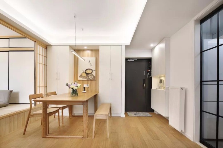 总感觉国内的入户防盗门厂商好像都商量过似的,样子基本都差不多,颜色基本都是红彤彤。虽说质量一般不会差,但正因为这样,所以搞得比较尴尬。 换一扇吧?总觉得新房子的门本来质量还不错,你干嘛还要花几千块去换掉呢?不换吧,这颜色和很多装修风格不好搭配啊。 看上图这地中海风格,蓝色、圆弧、木制假梁、仿古砖、马赛克都很到位,但是这红彤彤的入户门,一秒钟破功。还有很多现在流行的北欧风、台式风、极简风、原木风基本上碰到我们这样的防盗门都得破功。 如果又想和谐,又不想换门怎么办呢?其实也比较简单,基本上把门的颜色换一下就能基本解决这个问题。 改变门的颜色有很多办法:1、喷漆或者刷漆;2、贴纸;3、贴毛毡。 第一种办法是比较容易想到的,但是施工起来相对比较花费功夫。首先最好是先用砂纸把表面打磨原有的漆打磨掉,刷漆或者喷漆之前要注意保护好周边以及门锁部分,用美纹纸贴住就可以。刷漆要看漆的遮盖度,一般来说一遍两遍是不够的,当然得刷完一遍,等干了之后再刷第二遍。 效果最好的话,当然是用金属漆,其次是油漆,不过如果家里有多余的乳胶漆和黑板漆想要废物利用一下,其实也可以凑合着用的,当然效果别想保持十年八年的。 贴纸的话其实也比较容易想到,而且材料成本很低,施工要考验耐心,如果动手贴过窗户玻璃贴膜就能明白了,想要把大面积的贴纸贴得没有气泡非常平整的难度还是比较大的,除非你是平时在天桥上摆摊的“祖传贴膜”。 贴毛毡是最近的网红办法,原理跟贴纸是一样的,只是施工难度要稍微低一些,而且整体质感会比贴纸好一些,挺特别的。 以上这些办法的改造成本都不是很高,算材料的话,便宜的几十块,贵的可能也就花个两三百就可以搞定了,而且网上都可以买到材料。总比重新买一扇门要便宜很多,而且也解决了防盗门太丑的问题。