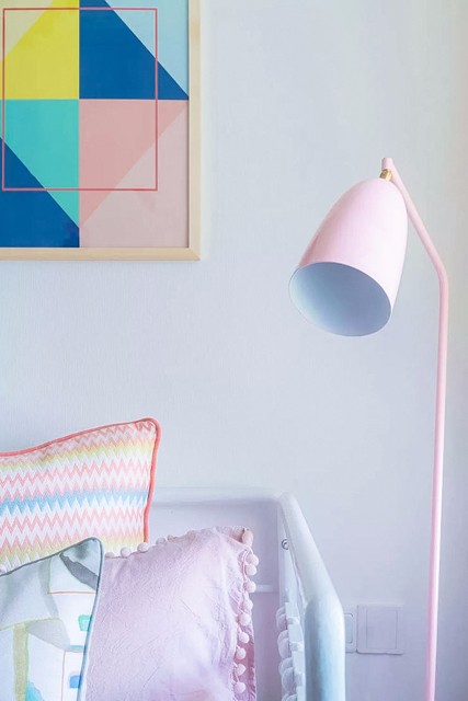 五彩的几何图形,趣妙横生,粉嫩嫩的颜色,等待着公主的降临,橙色调的窗帘,让空间丰富多彩。 卫生间