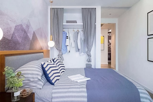 真正的爱,意味着无比的自由。浅色卷起的衣柜帘子,随意而洒脱。清新素雅的床铺和床头背景墙,让卧室里缓缓流出清澈的光。清晨的阳光穿过窗纱温柔的洒进卧室,缠绵得宛如幻境,编织着不愿醒来的梦。 父母房