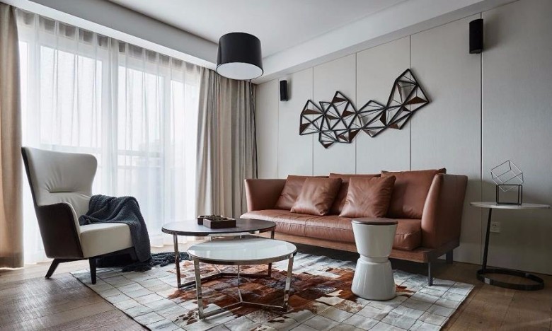 折中处理的话,可以利用沙发上方的空间做吊柜