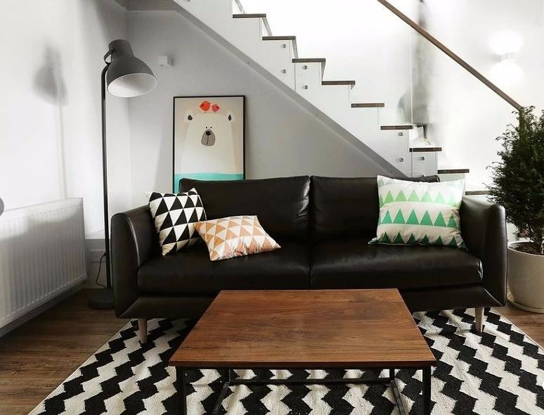 沙发背靠楼梯的情况很少