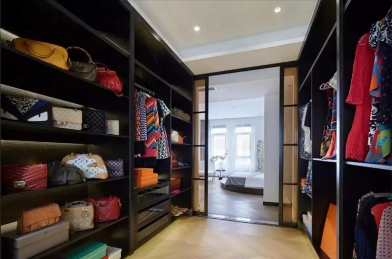 另外在衣帽间设计一个坐墩或伸缩拉杆,在替换衣服的时候能坐能挂,则是人性化设计的表现。