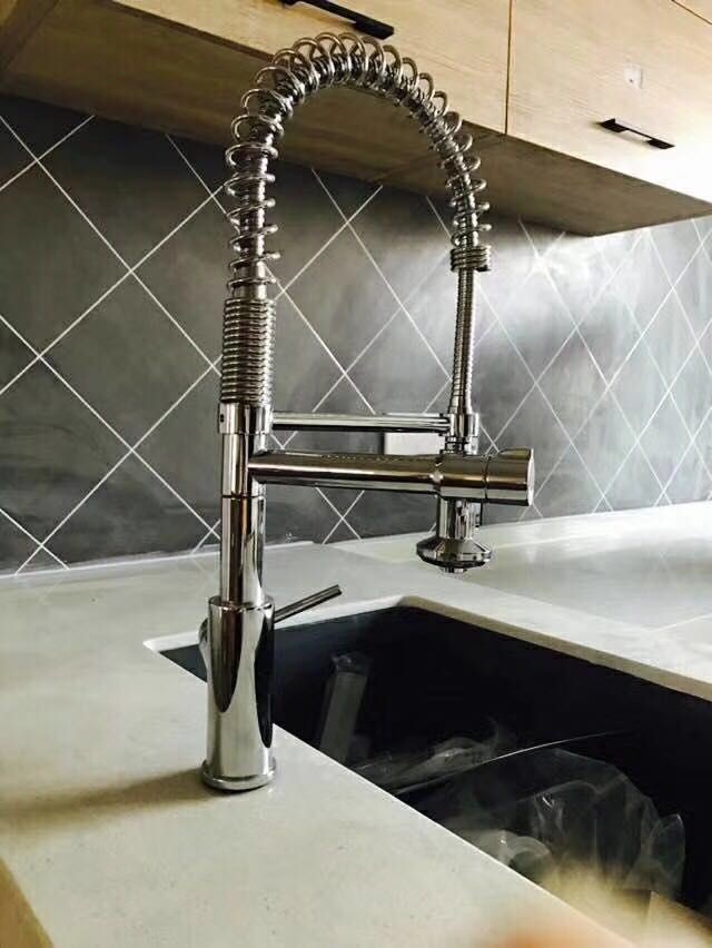 龙头:重要的事情说三遍,厨房龙头一定要用抽拉龙头,厨房龙头一定要用抽拉龙头,厨房龙头一定要用抽拉龙头。抽拉龙头一定要选用好的,抽拉还是很考验厂家技术的。抽拉的三种技术:弹簧抽拉,卡扣抽拉,重力铅抽拉。