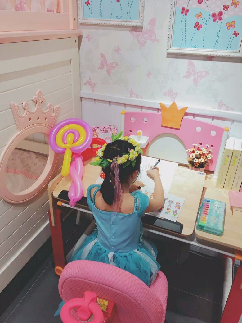 接受老师们的指导后,小朋友都各自选择了2平米智慧学桌作为自己的“根据地”。根据自己的情况,调试课桌后进行绘画。
