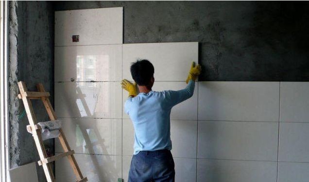 3、铺贴瓷砖:给瓷砖刷上背胶,然后用砂浆进行铺贴即可。