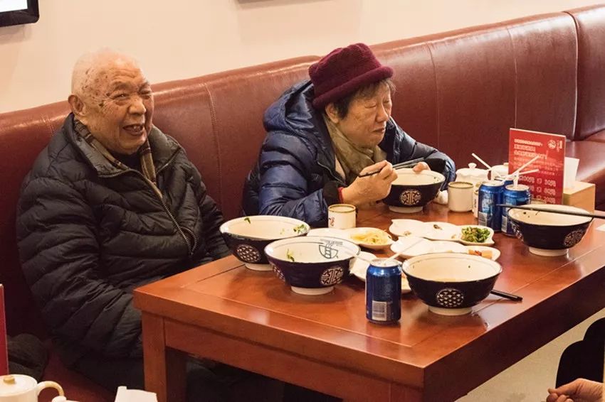住在附近的老爷爷奶奶也结伴过来就餐