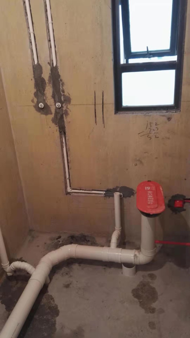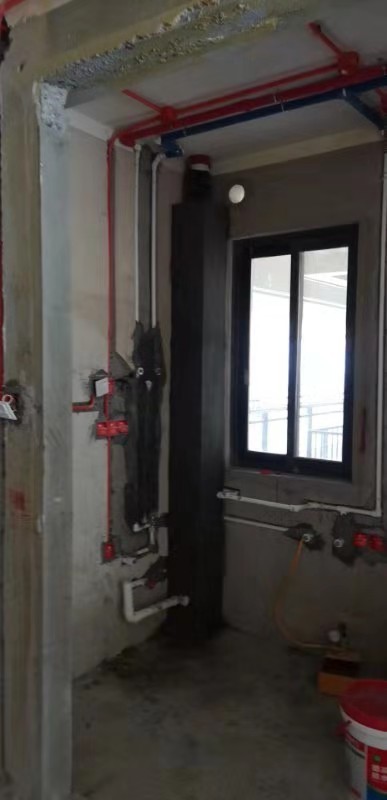 水路改造我就随便拍了一张,主要就是冷热水管分开,然后出口间隔15cm保证后期淋浴的安装即可