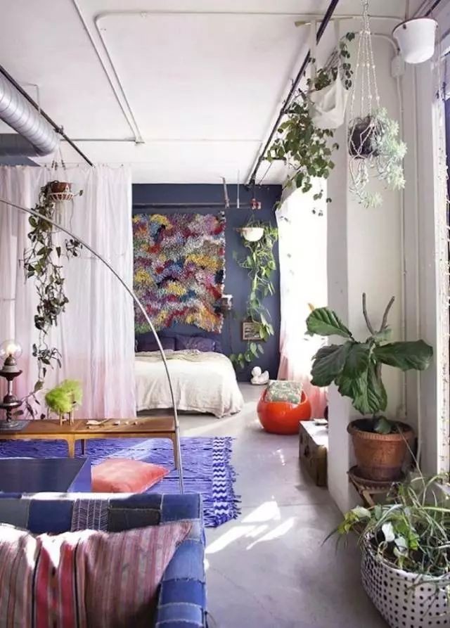 色泽漂亮的帘幕可将卧室分割成几个不同机能的小空间。