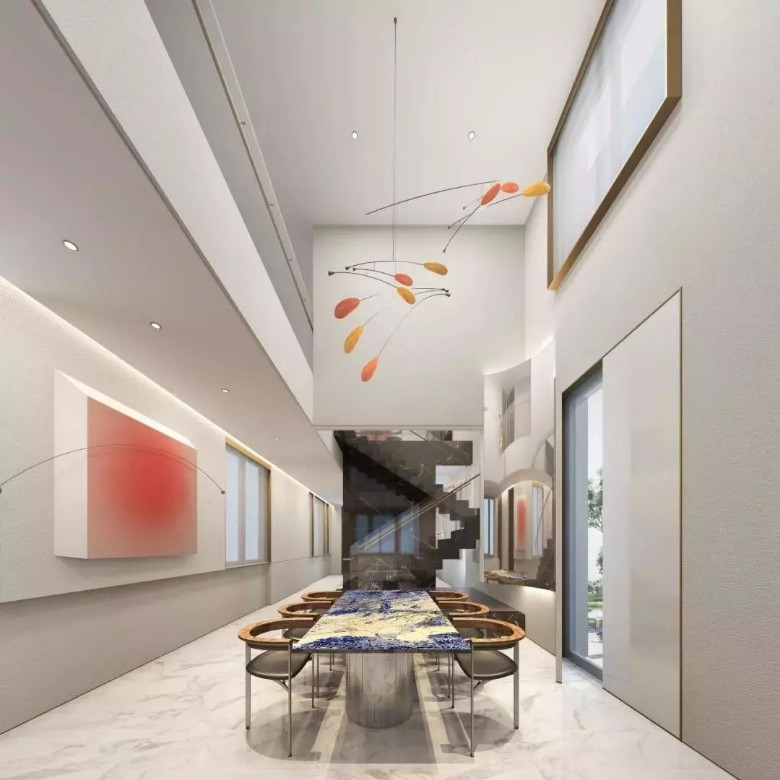 而与筒灯、射灯结合设计的艺术小吊灯,