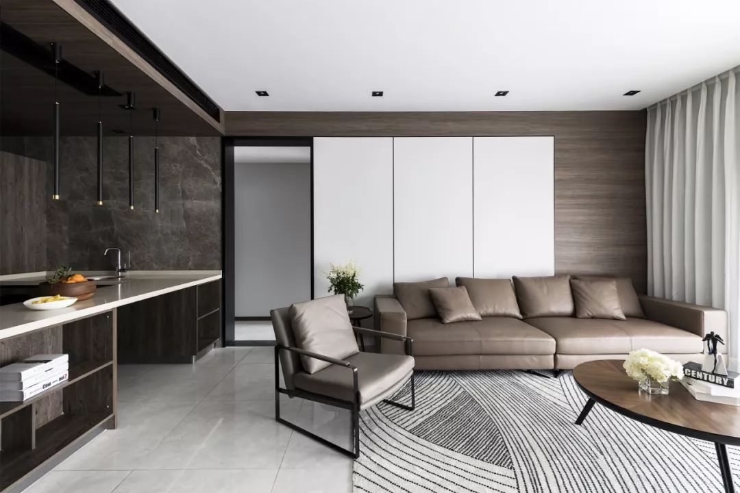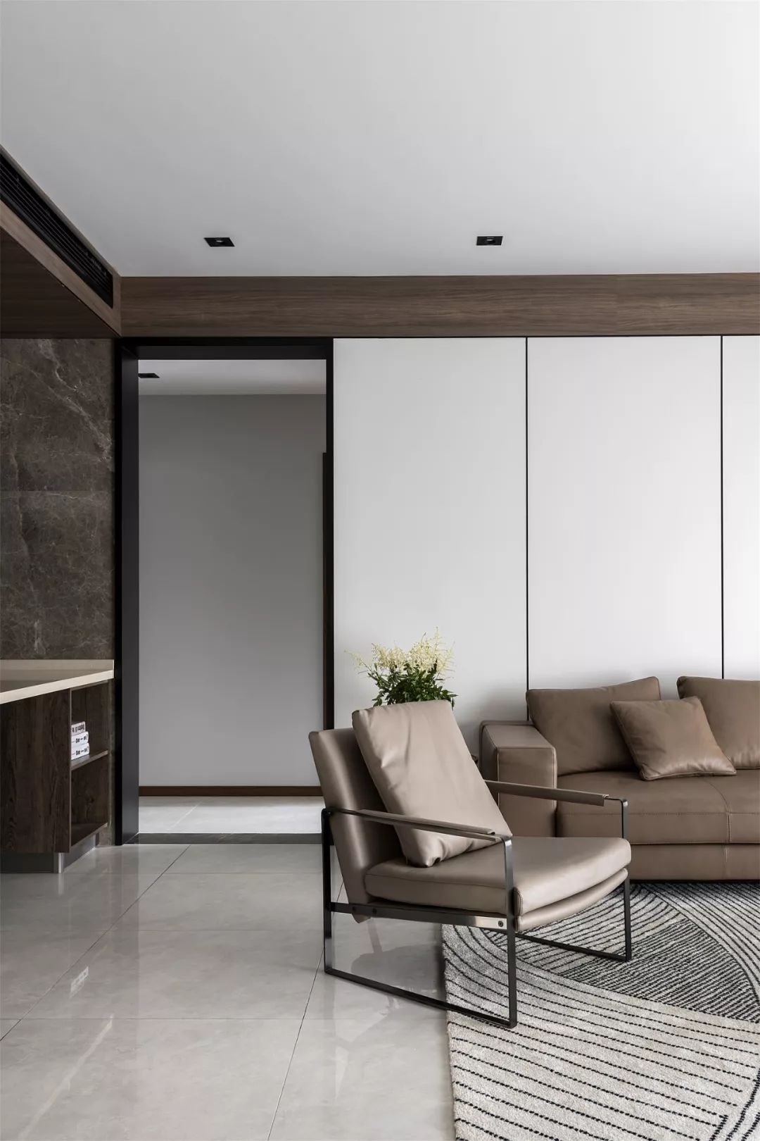 设计师在客厅墙面材质的选择上,均采用木饰面作为装饰,更倾向于营造出大气简约的氛围。摒弃传统吊灯的方式,采用点光源射灯,让空间中每个角落都能手机同样的光源。低饱和度的电视墙,将低调内敛、返璞归真的生活态度作了淋漓尽致的表达。电视墙旁边的背景墙四女儿房的入门,隐形门的设计,地提升了空间品质。