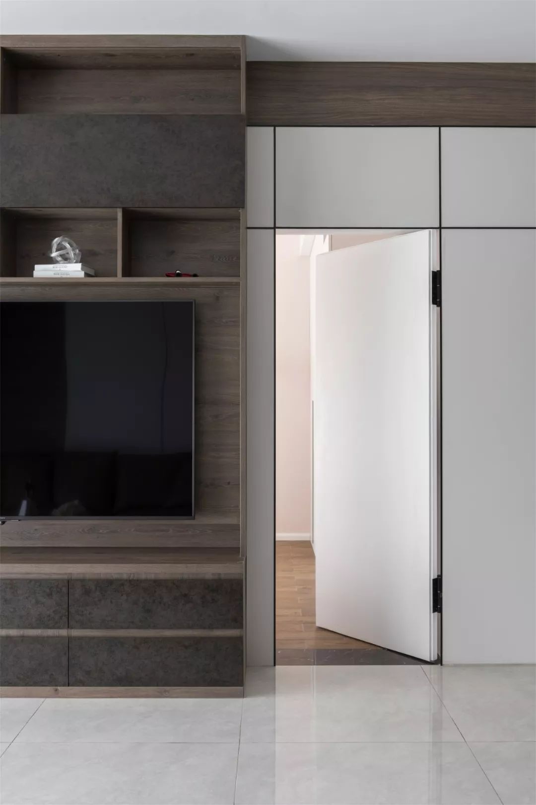 4,客厅电视墙设置有滑动隐形门,作为儿童房的入户门