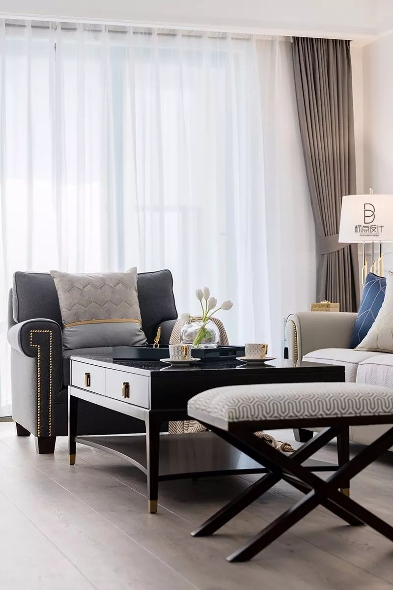 浅咖色的主沙发与深灰色单人沙发及不褐色茶几的搭配,