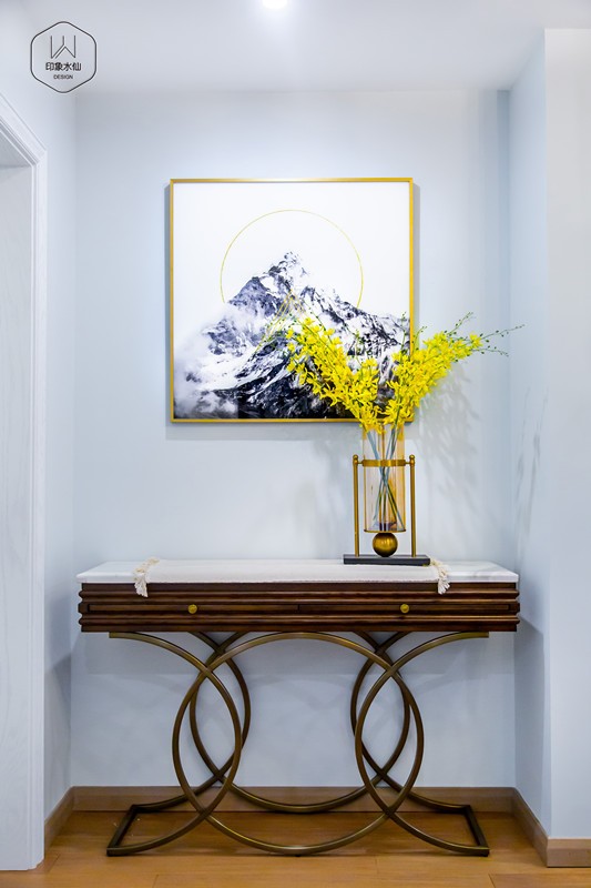走廊尽头精致的装饰品,时尚又有格调,配上一幅雪山画,推门入户即映入眼帘,让人眼前一亮。
