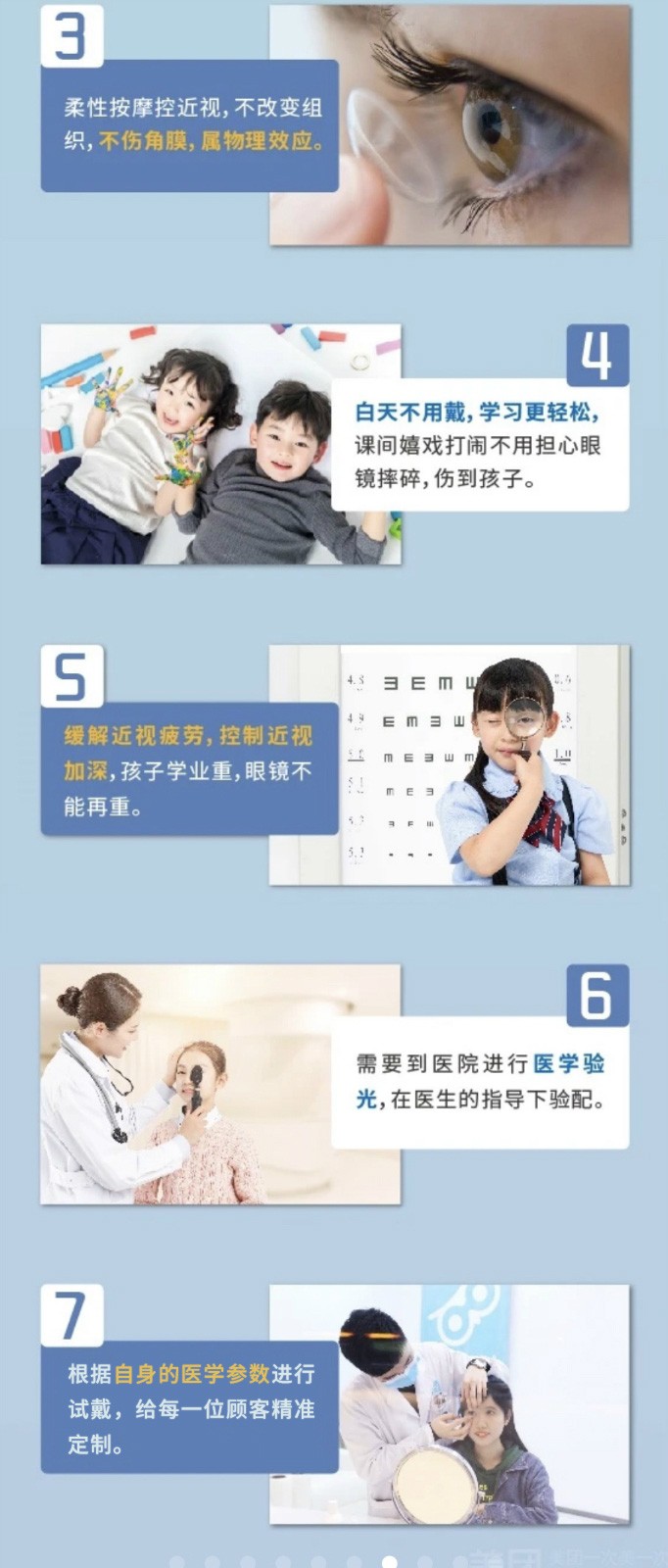 1、专业建立视光档案(固定日期来复查视力,建立数据分析),直至18周岁。