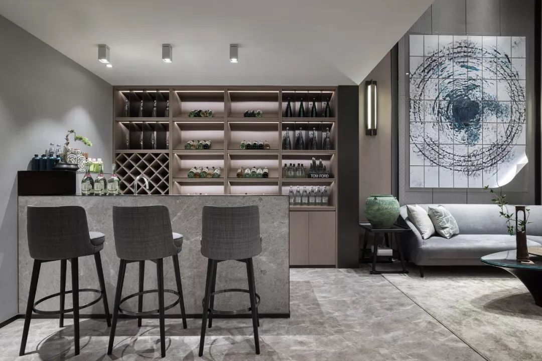 松下成影,瓶樽清透,设计在方寸之间营造一片把酒作兴、长歌怡乐的清雅小天地,冲洗都市生活的疲惫与压力感。