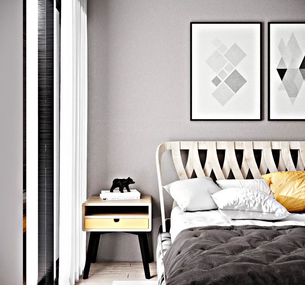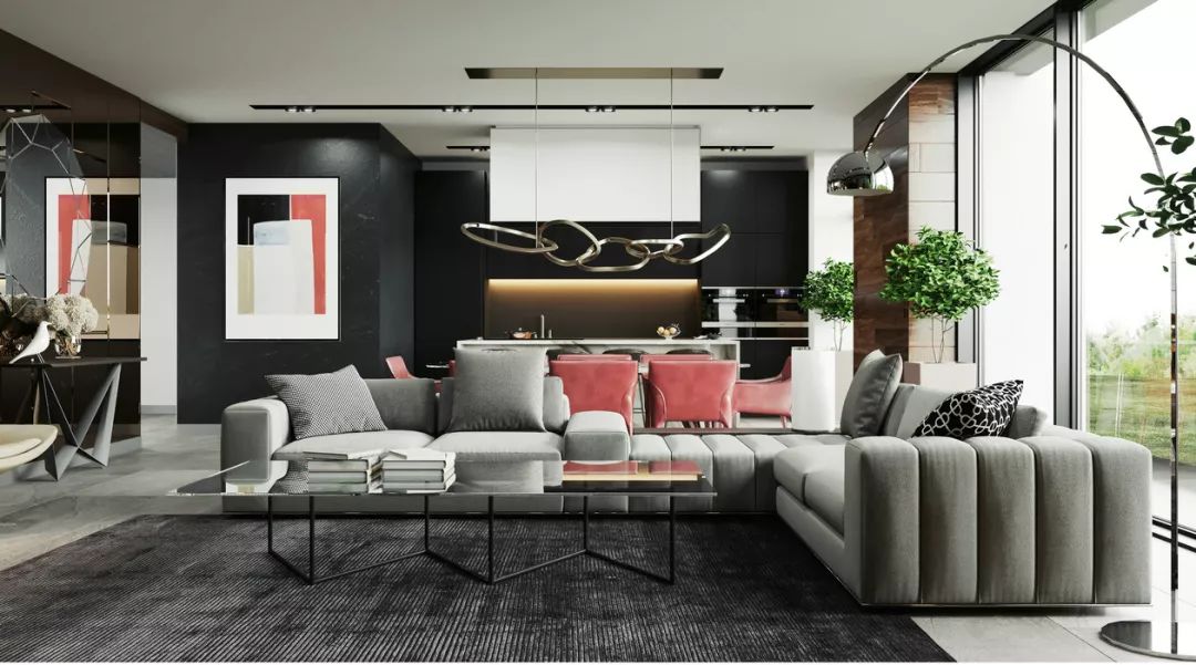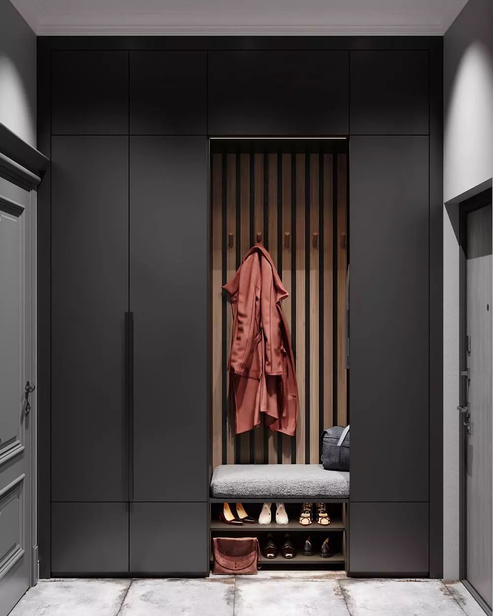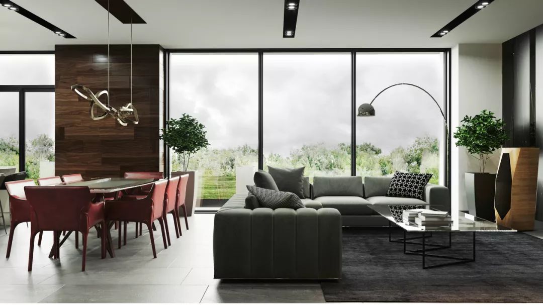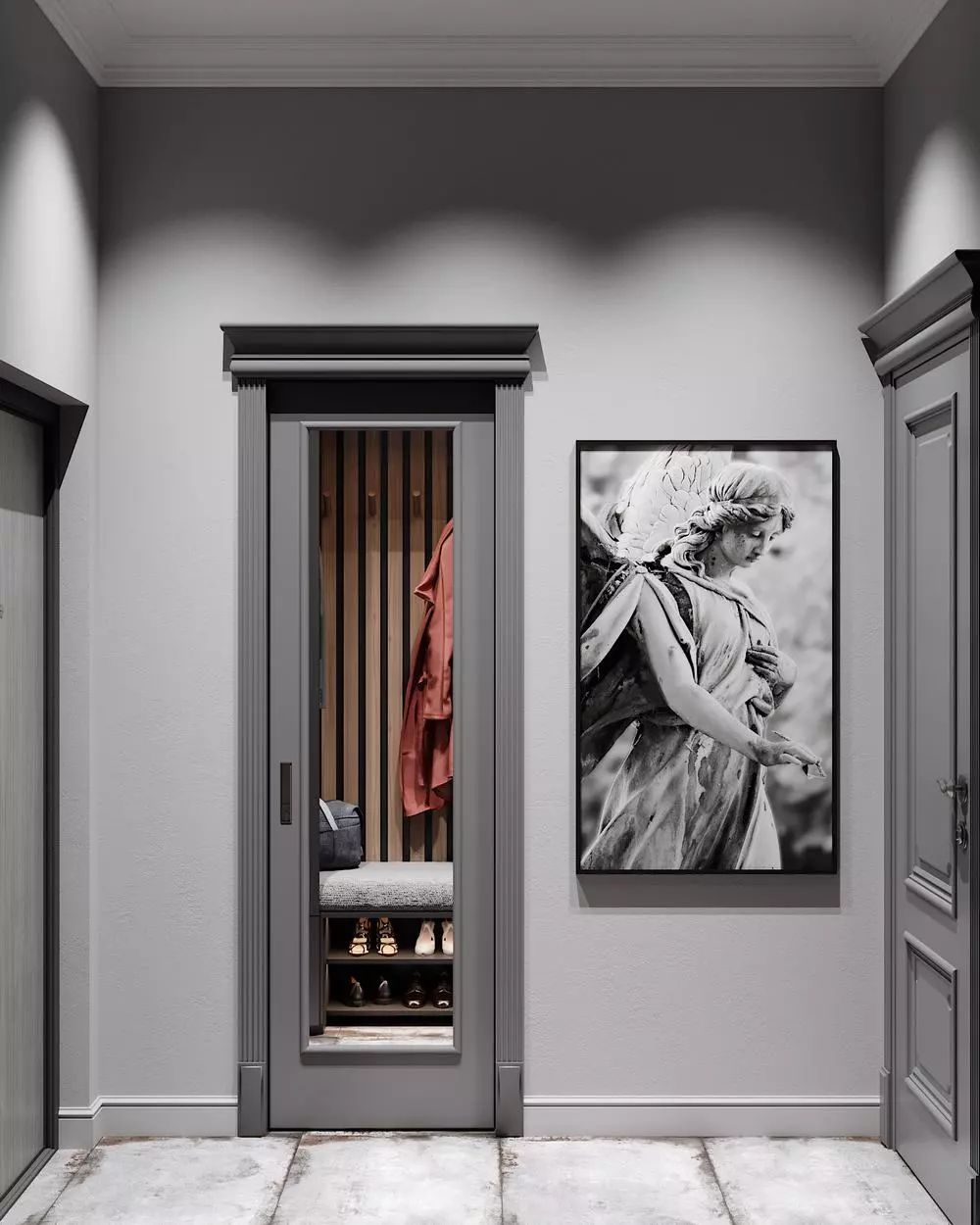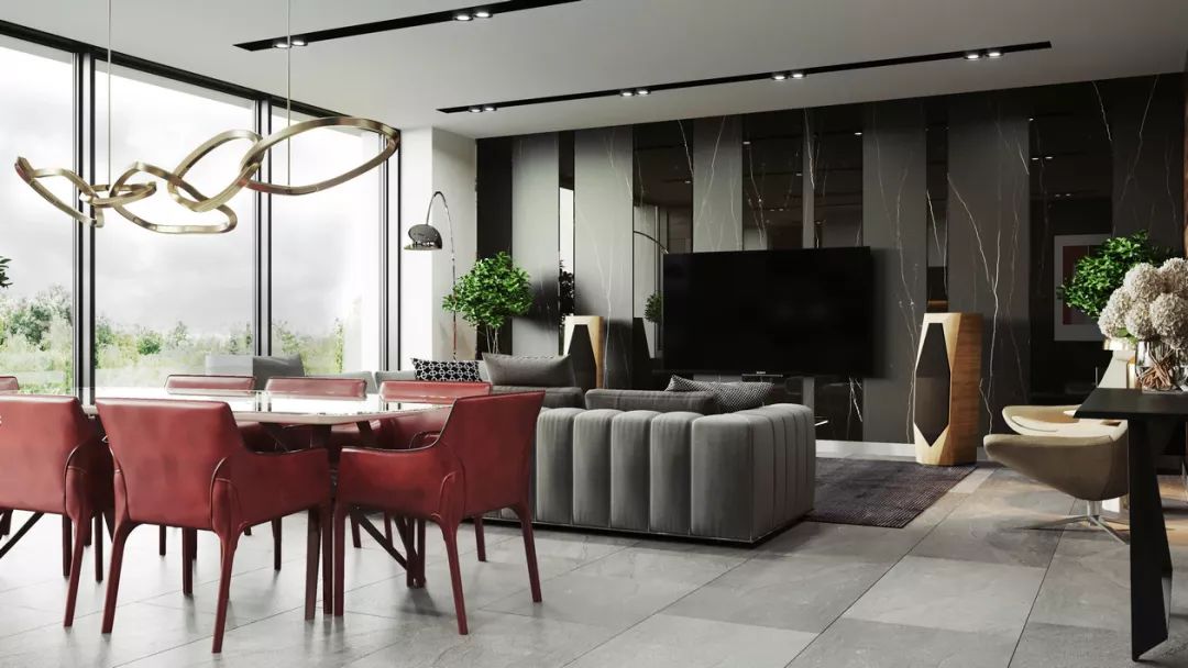 高级灰是优雅,更是冷静与平和,而深红色带给空间灵气,就像一杯红酒,荡漾出高贵与雅致。红色无需过多,软装上呈现即可,可以是装饰画,也可以是靠包或者椅子靠背。