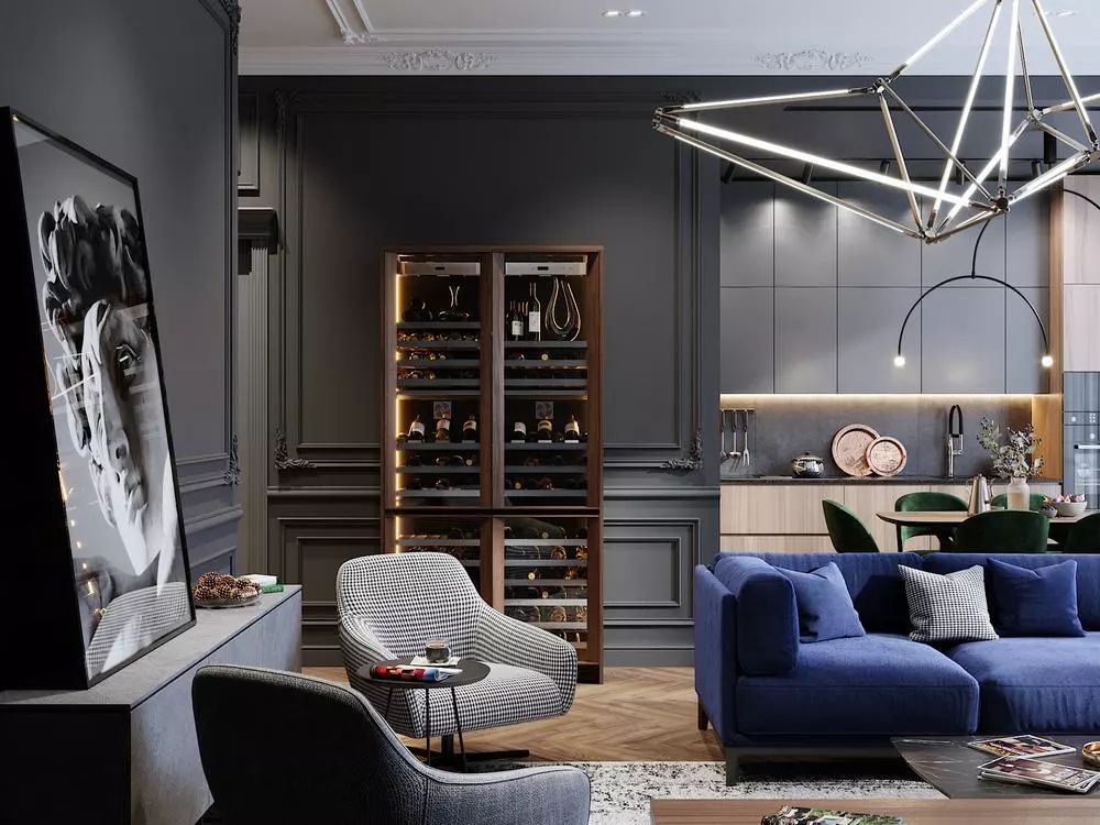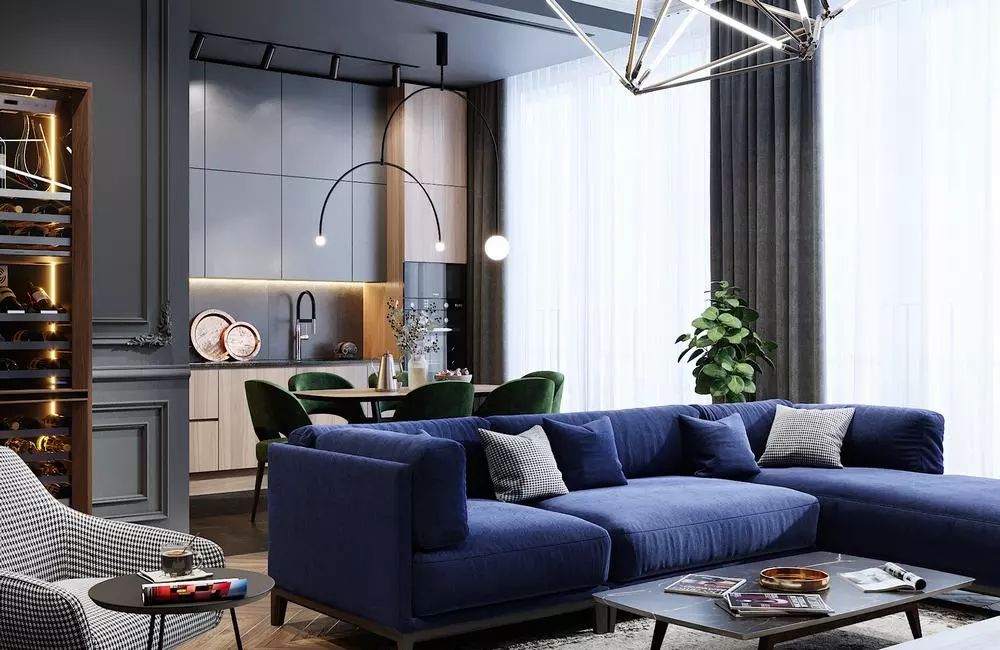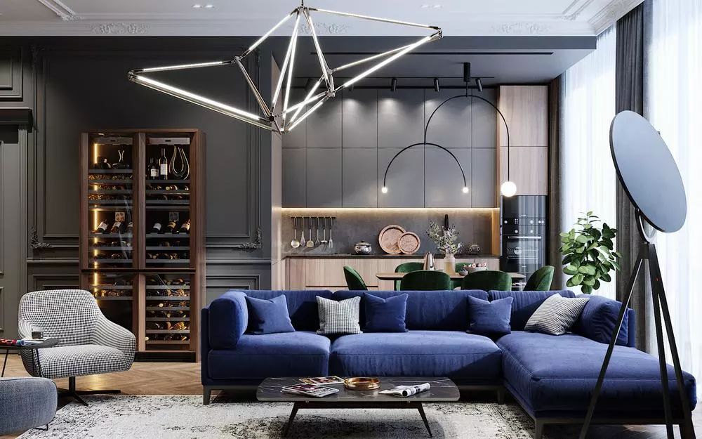 非凡的色彩配搭可以为家居空间注入灵魂,让整个空间充满气场与格调,比如广受潮人们挚爱的灰、蓝色调,一个自带着绅士范儿的优雅,一个骨子里展现着高贵与典雅气质,将这两种色彩糅合融入进居室设计中,源源不断产生的奢雅气质将为你的家增添无尽魅力。再以华丽的现代材质以及金属元素加以辅助,即使是再简约的设计也能瞬间惊艳世人的感官。