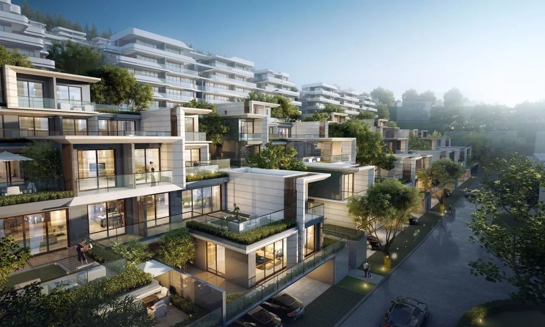 汲取全球建筑美学代表——圣托里尼的建筑精髓,从合院到叠院直至洋房,每一栋建筑都依据地势起伏,尽量吻合大地森林的弧度,回归人对自然的诉求。