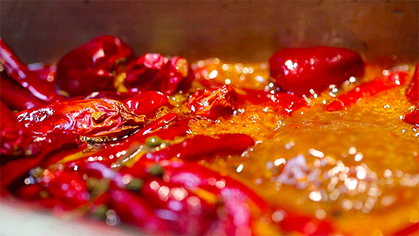 朝天椒、灯笼椒、鲜青花椒,椒界三巨头齐聚一锅,扛把子牛油小肥猪坐镇,光看着嘴巴就开始微微颤抖了。