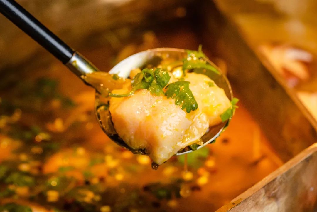 选用了进口的优质巴沙鱼片,搭配秘制发酵的老坛酸菜和各种香料、时蔬,经过独特的调配工艺完成!这大块鱼肉是闹哪样!