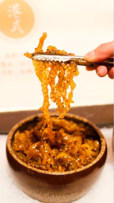 精选优质花胶——巴沙鱼鱼肚,是女生无法抵挡的胶原蛋白诱惑!花胶和鲍鱼、鸡肉、野米、香菇一起,用文火慢炖,熬煮出诱人的锅底。