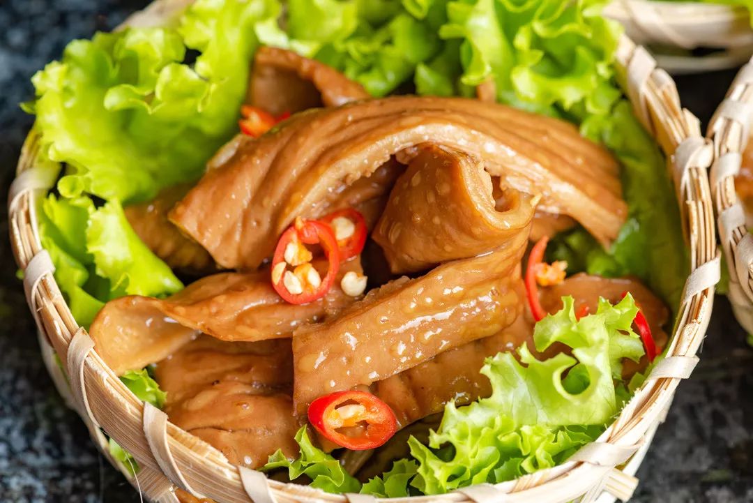 香卤湊湊包括猪蹄、牛蹄筋、卤牛肚和猪大肠,上桌可以直接吃,涮煮一下滋味更足!