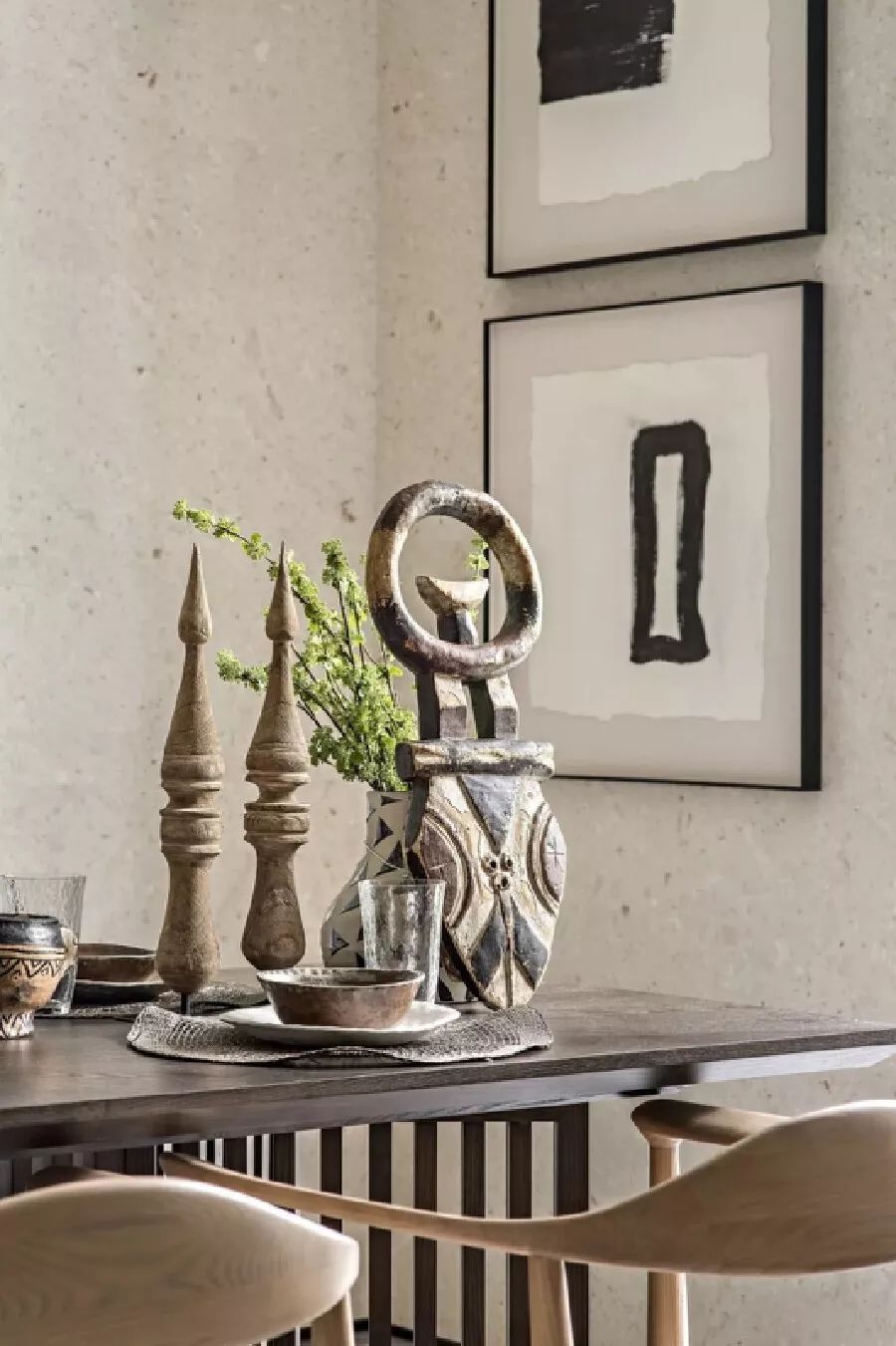 老人房并不显得“沉重”,浅色朴拙的原木桌搭配迥然相异的现代饰品,于异质美学碰撞间营造出别具一格的艺术感。